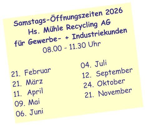 Öffnungszeiten Hs. Mühle Recycling AG für Gewerbe- + Industriekunden