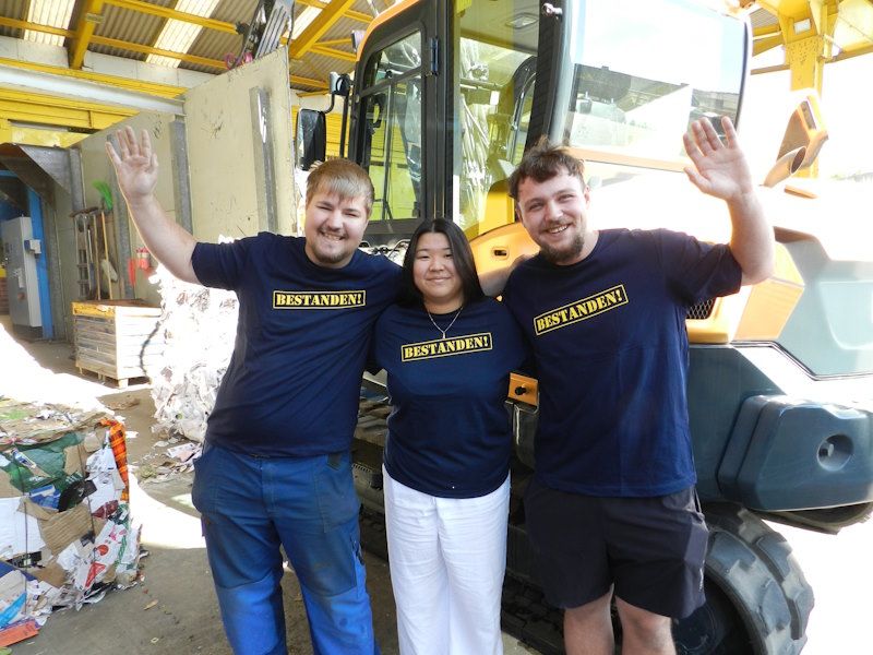 Unsere drei Lernenden haben ihre LAP sehr erfolgreich bestanden. Recyclist EFZ Samuel Grob ist mit einem Hammerschnitt von 5.1 der Beste in der Deutschschweiz und der zweitbeste Schweizweit. Bravo, Bravo!! Monika Vo ist jetzt ausgebildete Kauffrau EFZ mit einer super 5 und Jerome Moser (links) ist mit einem tollen Schnitt von 4.8 nun Recyclist EFZ.